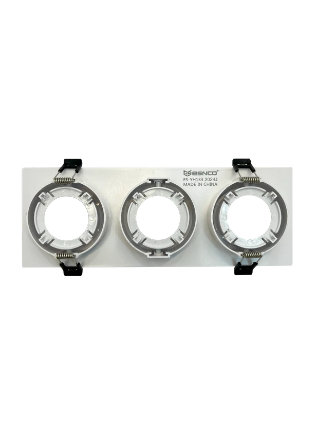 قاب هالوژن سهتایی آلومینیومی، گزینهای ایدهآل برای نورپردازی مدرن و منظم در فضاهای مسکونی، تجاری و اداری است. طراحی مینیمال و یکدست این قاب، جلوهای شیک و هماهنگ با سقف ایجاد میکند و امکان نصب سه عدد هالوژن بهصورت همزمان را فراهم میسازد.